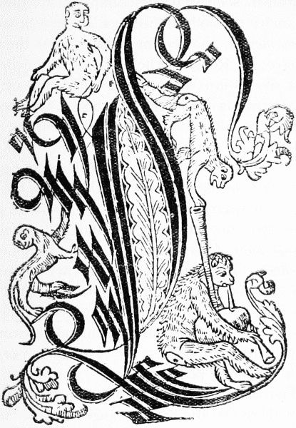 Of Schoeffer's coloured capitals enough has already been said. Woodcut initials for printing in outline, the outline being intended to be coloured by hand, were used by Günther Zainer at Augsburg at least as early as 1471, and involved him in a controversy to which we shall allude in our next chapter. Their use spread slowly, for it was about this date that the employment of hand-painted initials was given a fresh lease of life, by the introduction of the printed 'director,' or small letter, indicating to the illuminator the initial he was required to supply. The director had been used by the scribes, and in early printed books is frequently found in manuscript. It was, of course, intended to be painted over, but the rubrication of printed books was so carelessly executed that it often appears in the open[Pg 26] centre of the coloured letter. In so far as it delayed the introduction of woodcut letters, this ingenious device was a step backward rather than an improvement.