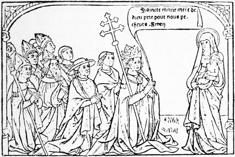 In France and Italy, on the other hand, the early printers were confronted by many wealthy book-lovers, accustomed to manuscripts adorned with every possible magnificence, and in a few instances they found it worth while to cater for their tastes. For this purpose they employed the most delicate vellum (very unlike the coarse material used by the Germans for its strength) decorating the margins with elaborate borders, and sometimes prefixing a coloured frontispiece. In France this practice was begun by Guillaume Fichet and Jean Heynlyn, the managers of the press at the Sorbonne. Several magnificent copies of early Sorbonne books—so sober in their ordinary dress—are still extant, to which Fichet has prefixed a large miniature representing himself in his clerical garb presenting a copy of the book to the Pope, to our own Edward IV., to Cardinal Bessarion, or to other patrons. In some cases he also prefixed a specially printed letter of dedication, thereby rendering the copy absolutely unique. Some twenty years later this practice of preparing special copies for wealthy patrons was resumed by Antoine Vérard, whose enterprise has bequeathed to the Bibliothèque Nationale a whole row of books thus specially decorated for Charles VIII., and to the British Museum a no less splendid set commissioned by Henry VII. Nor were Vérard's[Pg 15] patrons only found among kings, for a record still exists of four books thus ornamented by him for Charles d'Angoulême, at a total cost of over two hundred livres, equivalent to rather more than the same number of pounds sterling of our present money.