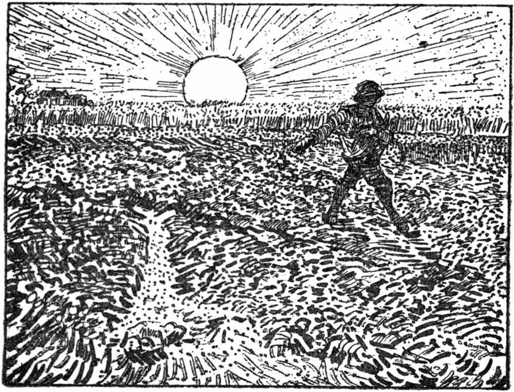 Now I maintain that Van Gogh and Gauguin took up this position.—But I am anticipating.—Van Gogh passed through another stage before he reached this final one. It suddenly flashed across his mind that he had something to bestow, something to bequeath, and that an artist’s life was not all taking, robbing, or copying. He felt a richness in him which bade him dispense and no longer receive.