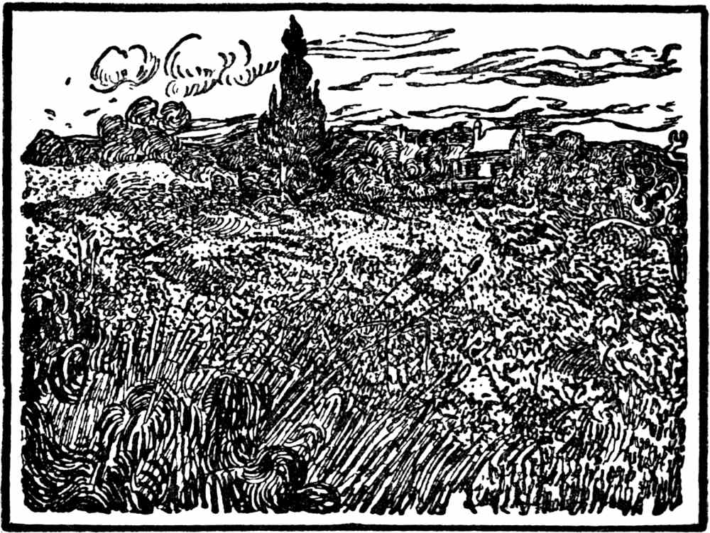 A still more remarkable fact about Van Gogh is, however, that during the last eight years of his life—the only years, that is to say, in which he may really be said to have devoted himself entirely to painting, whether at the Hague, Drenthe, Nuenen, Antwerp, Paris, Arles, San Remy, or Auvers-sur-Oise—he practically epitomised in his own work the whole of the development of modern painting, from the academical manner of his own day, to a style which I maintain was on the point of bearing him far beyond the impressionists and so-called post-impressionists. And when I say “far beyond the impressionists and so-called post-impressionists,” I do not mean it in the accepted sense of this phrase, I do not mean that with Gauguin he promised to land in any of the futile absurdities with which those artists that were hung beside them provoked the mirth of London at the famous exhibition at the Grafton Galleries in 1910-1911. I mean it in this case as something peculiar to Van Gogh and Gauguin alone—something which I shall explain in due course and which I regard as valuable and worthy of a more sound artistic instinct than that possessed by all their contemporaries.