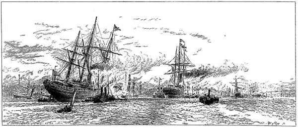 The situation of this great city is in some respects one of the most enviable in the country. Stretching along the upper bank of an unrivalled estuary, 1200 yards across where narrowest, and the river current of which flows westwards, it is near enough to the sea to be called a maritime town, yet sufficiently far inland never to suffer any of the discomforts of the open coast. Upon the opposite side of the water the ground rises gently. Birkenhead, the energetic new Liverpool of the last fifty years, covers the nearer slopes; in the distance there are towers and spires, with glimpses of trees, and even of windmills that tell of wheat not far away.
