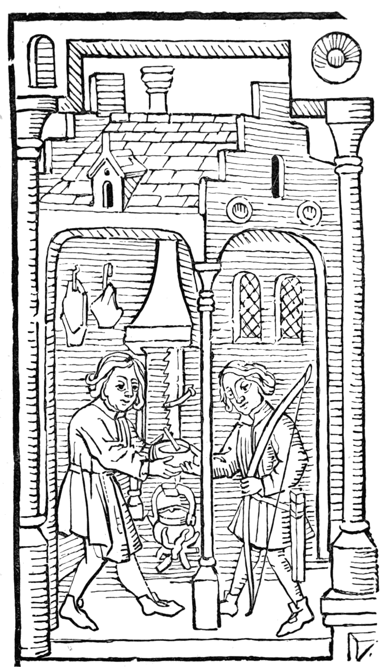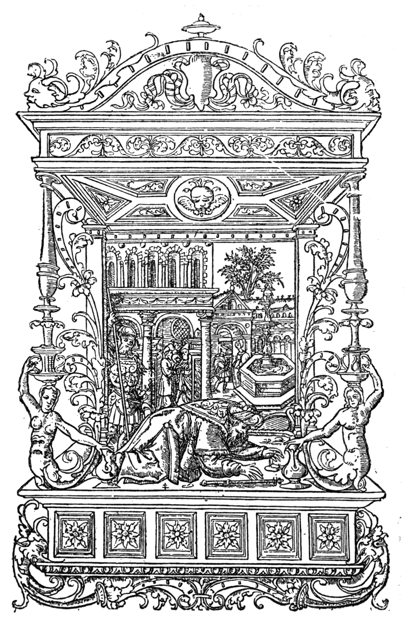 [4] An English version, neither faithful nor complete, was published in the time of Queen Elizabeth, 'At London, Printed for Simon Waterson, and are to be sold at his shop in St. Paule's Churchyard at Chepegate, 1592.' It is extremely scarce. Many of the pages, as giving examples of costume, have lately been reprinted by authority of the Science and Art Department.