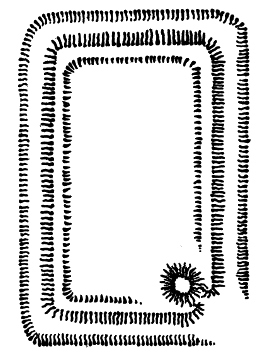| This gigantic earthwork looms darkly in the distance, with indications upon its broken outline of the enormous mounds and fosses which render it one of the most impressive examples of its class. As a work of Neolithic man it commands attention, both by reason of the vastness of its plan and the skill shown in the design. | ||