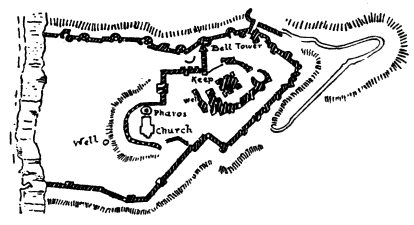 | The great Keep dominates the view, with the buildings of its fore-court at the base, while below are seen the towers and massive defences of the formidable entrance to the Castle. It is one of the most impressive piles to be seen in the British Isles, and never fails to impress the foreigner when approaching it from the coast of France. | ||