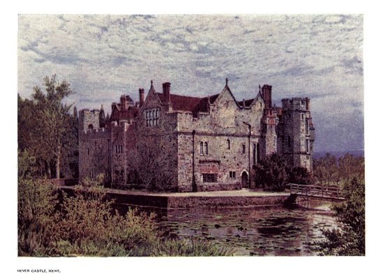| Hever Castle dates from the time of Edward III., and a romantic interest is attached to it in connection with the ill-fated Anne Boleyn, whose family resided there. The Gatehouse, not shown in the illustration, is undoubtedly one of the most effective portions of the building. | ||