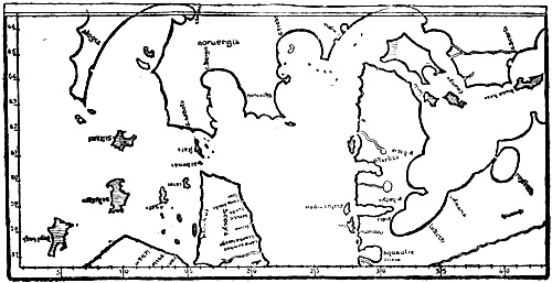 It might be objected to the view that “Vínland hit Góða” originally meant “Insulæ Fortunatæ,” that several sorts of wild grape are found on the east coast of North America; it might therefore be believed that the Greenlanders really went so far and discovered these. Storm, indeed, assumed that the wild vine grew on the outer east coast of Nova Scotia; but he is unable to adduce any certain direct evidence of this, although he gives [1887, p. 48] a statement of the Frenchman Nicolas Denys in 1672, which points to the wild vine having grown in the interior of the country.[2] He also mentions several statements of recent date that wild-growing vines of one kind or another have been observed near Annapolis and in the interior of the country, but none on the south-east coast. Professor N. Wille informs me that in the latest survey of the flora of North America Vitis vulpina is specified as occurring in Nova Scotia; but nothing is said as to locality. The American botanist, M. L. Fernald [1910, pp. 19, f.], on the other hand, thinks that the wild vine (Vitis vulpina) is not certainly known to the east of the valley of the St. John in New Brunswick (see map, vol. i. p. 335), where it is rare and only found in the interior. From this we may conclude that even if it should really be found on the outer south-east coast of Nova Scotia, it must have been very rare there, and could not possibly have been a conspicuous feature which might have been especially mentioned along with the wheat. But even if we might assume that the saga was borne out to this extent, it would be one of those accidental coincidences which often occur. It must, of course, be admitted to be a strange chance that the world of classical legend should have fertile lands or islands far in the western ocean, and that Isidore should[Pg 4] describe the self-grown vine and the unsown cornfields in these Fortunate Isles, and that long afterwards fertile lands and islands, where wild vines and various kinds of wild corn grew, should be discovered in the same quarter. Since we have the choice, it may be more reasonable to assume that the Icelanders got their wine from Isidore, or from the same vats that he drew his from, than that they fetched it from America. Again, even if the Greenlanders and Icelanders had found some berries on creepers in the woods—is it likely that they would have known them to be grapes? They cannot be expected to have had any acquaintance with the latter.[3] The author of the “Grönlendinga-þáttr” in the Flateyjarbók is so entirely ignorant of these things that he makes grapes grow in the winter and spring (like the fruits all the year round on the trees in the myth of the fortunate land in the west), and makes Leif’s companion Tyrker intoxicate himself by eating grapes (like the Irishmen in the Irish legends), and finally makes Leif cut down vine-trees (“vínvið”) and fell trees to load his ship, and at last fill the long-boat with grapes (as in the Irish legends); in the voyage of Thorvald Ericson they also collect grapes and vine-trees for a cargo, and Karlsevne took home with him “many costly things: vine-trees, grapes and furs.” It is scarcely likely that seafaring Greenlanders about 380 years earlier had any better idea of the vine than this saga-writer, and we hear nothing in Eric’s Saga about Leif or his companions having ever been in southern Europe. No doubt it is for this very reason that the “Grönlendinga-þáttr” makes a “southman,” Tyrker, find the grapes.