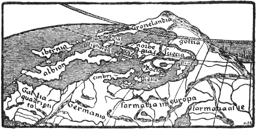 [Pg 2]It is clear that “Africanæ Insulæ” is here used directly as a name instead of Wineland, in connection with Markland and Helluland, as in the Icelandic geography. But the African Islands (i.e., originally the Canary Islands) were in fact the Insulæ Fortunatæ, in connection with the Gorgades and the Hesperides; and thus we have here a direct proof that they were looked upon as the same.