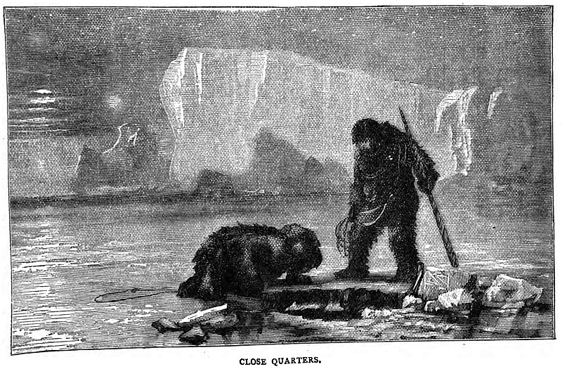 We could see the land to the westward, and, by keeping as close to it as the ice would allow, we hoped to fall in with plenty of game. We accordingly pulled away to the west where the sea was tolerably open. Our wish was to find the animals asleep on the ice where they could be more easily attacked and secured than in the water in which they have the means of exerting their great strength to the uttermost, whereas on the ice they were at our mercy.