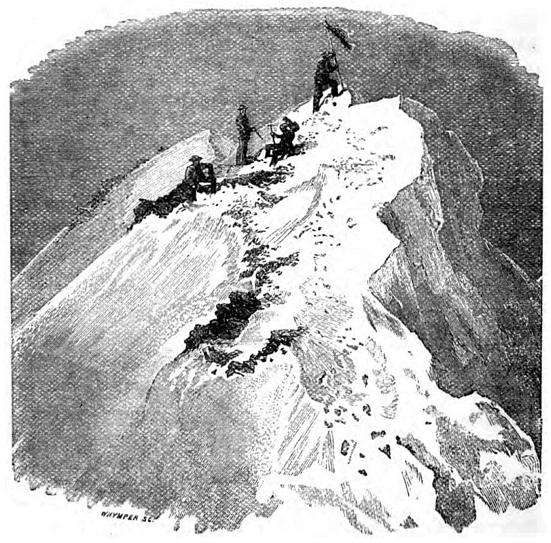 We were forward one evening, talking to the men, after they had knocked off work, the second mate having charge of the deck, the captain, first mate, and Andrew being below, when it was suggested that we two should try who could first reach the main truck. One was to start from the fore-top, the other from the mizen cross-trees. We were to come down on deck and then ascend the mainmast. We cast lots. It was decided that Ewen should start from the fore-top, I from the latter position. The second mate liked the fun, and did not interfere. We took up our positions, waiting for the signal—the wave of a boat-flag from the deck. The moment I saw it, without waiting to ascertain what Ewen was about, I began to run down the mizen shrouds; he in the meantime descended by the back stay and was already half up the main rigging on the port side before I had my feet on the ratlines on the starboard side. When once there I made good play, but he kept ahead of me and had already reached the royal-mast, swarming up it, before I had got on the cross-trees. As he gained the truck he shouted “Won! won!”
