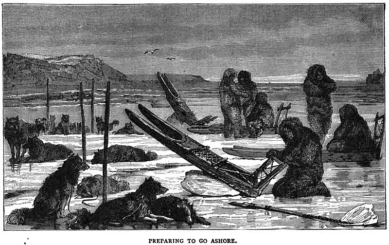 Sandy had barely time to leap back into the boat, when away we went, towed by the walrus, the bow pressed down in a way which threatened to drag it under water. Sandy stood ready, axe in hand, to cut the line to save us from such a catastrophe. Suddenly the line slackened. The walrus dived and shortly afterwards came up again.