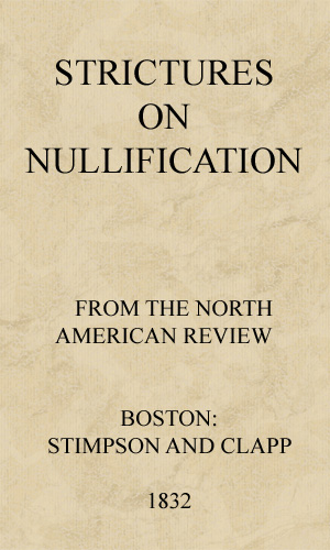Project Gutenberg's Strictures on Nullification, by Alexander Hill Everett This eBook is for the use of anyone anywhere at no cost and with almost no restrictions whatsoever. You may copy it, give it away or re-use it under the terms of the Project Gutenberg License included with this eBook or online at www.gutenberg.org Title: Strictures on Nullification Author: Alexander Hill Everett Release Date: September 17, 2012 [EBook #40785] Language: English Character set encoding: ISO-8859-1 *** START OF THIS PROJECT GUTENBERG EBOOK STRICTURES ON NULLIFICATION *** Produced by David Edwards, David E. Brown and the Online Distributed Proofreading Team at http://www.pgdp.net (This file was produced from images generously made available by The Internet Archive)