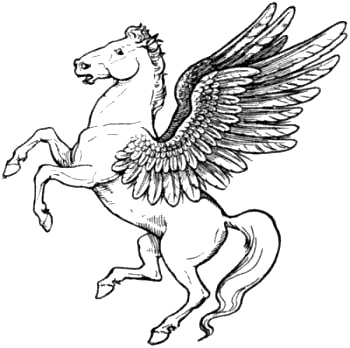 This fabulous marine creature in heraldry is compounded of the fore quarters of a horse with webbed paws, and the hinder part of a fish or dolphin. A scalloped fin is continued down the neck and back in place of a mane. It is frequently, though erroneously, to be seen depicted with the flowing mane of a horse; wings are also sometimes added to it, both of which, it is needless to say, are wrong, unless specially mentioned in the blazon.