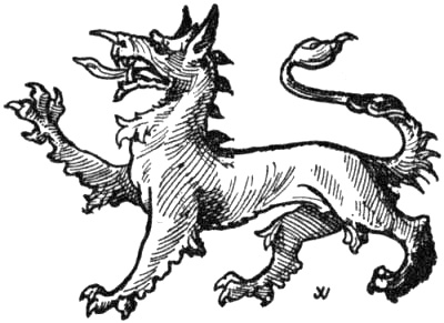 In conclusion, having, as far as possible, given the raison d’être of each, and traced the life-history and characteristics of the many strange and fantastic creatures in our symbolic menagerie, it only remains to express the hope that the information contained in this volume may be found both interesting and useful, as without some such knowledge there can be little or no intelligent understanding of the proper treatment of the forms of these mythical and symbolic beings. The suggestive illustrations, while giving the recognised forms of each, leaves to the artist free scope to adopt his own style of art treatment, whether purely heraldic or merely decorative.
