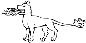 is depicted like a talbot in shape, but with the tail like that of a beaver, the feet webbed and the whole body scaled like a fish, a scalloped fin continued along the back from the head to the tail.