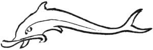 In its series of leaps out of the water the dolphin appears with high arched back, just as we see it represented in antique works; its natural shape, however, is straight, the back being but slightly curved. The broad tail paddle being placed in a horizontal position necessitates an up and down stroke, which makes their swimming to appear[Pg 268] a series of leaps and divings. Like its near relative the porpoise, it is an air-breathing animal; its apparent gambollings on the water may, therefore, be more truly attributed to its breathing and blowing whilst in pursuit of its prey.