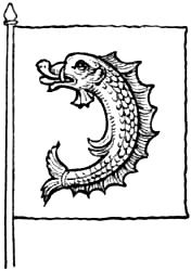 The dolphin was the insignia of the Eastern Empire—the Empire of Constantinople. The Courteneys, a noble Devonshire family, still bear the dolphin as crest and badge, and the melancholy motto, “Ubi lapsus? Quid feci?” (“Whither have I fallen? What have I done?”), “a touching allusion,” says Miss Millington (“Heraldry in History and Romance”), “to the misfortunes of their race, three of whom filled the imperial throne of Constantinople during the time that city was in possession of the Latins after the siege of 1204. Expelled at length by the Greeks, Baldwin, the last of the three, wandered from Court to Court throughout Europe vainly seeking aid to replace him upon the throne.”
