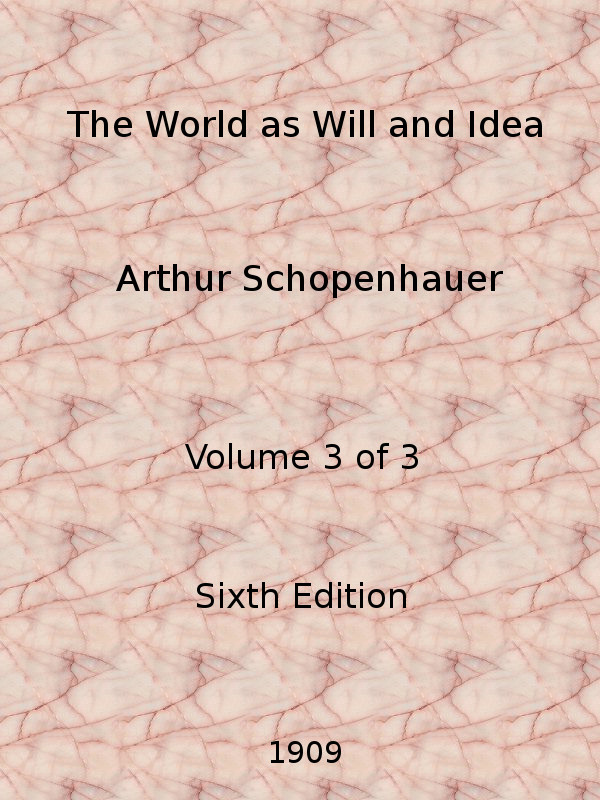Title: The World as Will and Idea (Vol. 3 of 3) Author: Arthur Schopenhauer Release Date: September 26, 2012 [Ebook #40868] Language: English Character set encoding: UTF-8 ***START OF THE PROJECT GUTENBERG EBOOK THE WORLD AS WILL AND IDEA (VOL. 3 OF 3)***