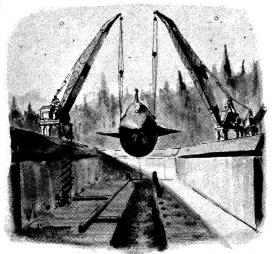 "Natural enough," Dudley retorted dryly. "Anyway, they send out big cranes to lower the rocket to horizontal so they can tow it on wheels under one of the loading domes. Handling cargo goes a lot faster and safer that way. Most of the town itself is underground."