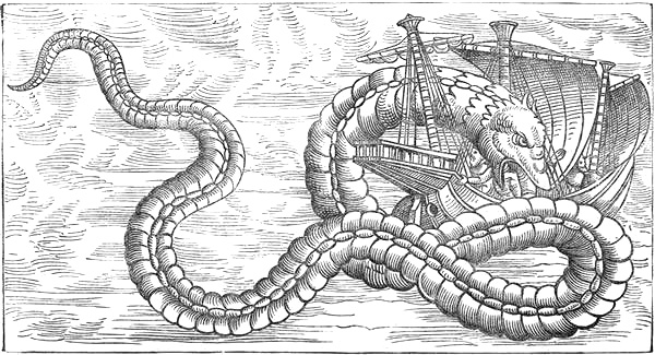 Again, believing as I do in the existence of some great undescribed inhabitant of the ocean depths, the much-derided sea-serpent, whose home seems especially to be adjacent to Norway, I recognise this monster as originating the myths of the midgard serpent which the Norse Elder Eddas have collected, this being the contrary view to that taken by mythologists, who invert the derivation, and suppose the stories current among the Norwegian fishermen to be modified versions of this important element of Norse mythology.[3]