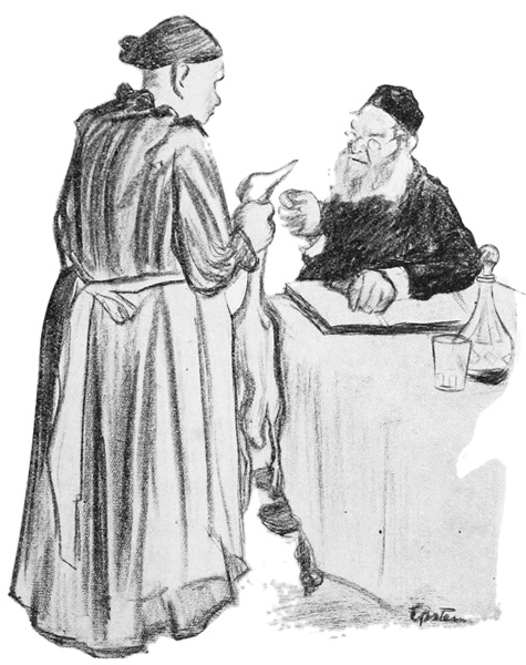 When the Jew comes to America he remains, if he is old, essentially the same as he was in Russia. His deeply rooted habits and the "worry of daily bread" make him but little sensitive to the conditions of his new home. His imagination lives in the old country and he gets his consolation in the old religion. He picks up only about a hundred English words and phrases, which he pronounces in his own way. Some of his most common acquisitions are "vinda" (window), "zieling" (ceiling), "never mind," "alle right," "that'll do," "politzman" (policeman); "ein schön kind, ein reg'lar pitze!" (a pretty child, a regular picture). Of this modest vocabulary he is very proud, for it takes him out of the category of the "greenhorn," a term of contempt to which the satirical Jew is very sensitive. The man who has been only three weeks in this 11 country hates few things so much as to be called a "greenhorn." Under this fear he learns the small vocabulary to which in many years he adds very little. His dress receives rather greater modification than his language. In the old country he never appeared in a short coat; that would be enough to stamp him as a "freethinker." But when he comes to New York and his coat is worn out he is unable to find any garment long enough. The best he can do is to buy a "cut-away" or a "Prince Albert," which he often calls a "Prince Isaac." As soon as he imbibes the fear of being called a "greenhorn" he assumes the "Prince Isaac" with less regret. Many of the old women, without diminution of piety, discard their wigs, which are strictly required by the orthodox in Russia, and go even to the synagogue with nothing on their heads but their natural locks.