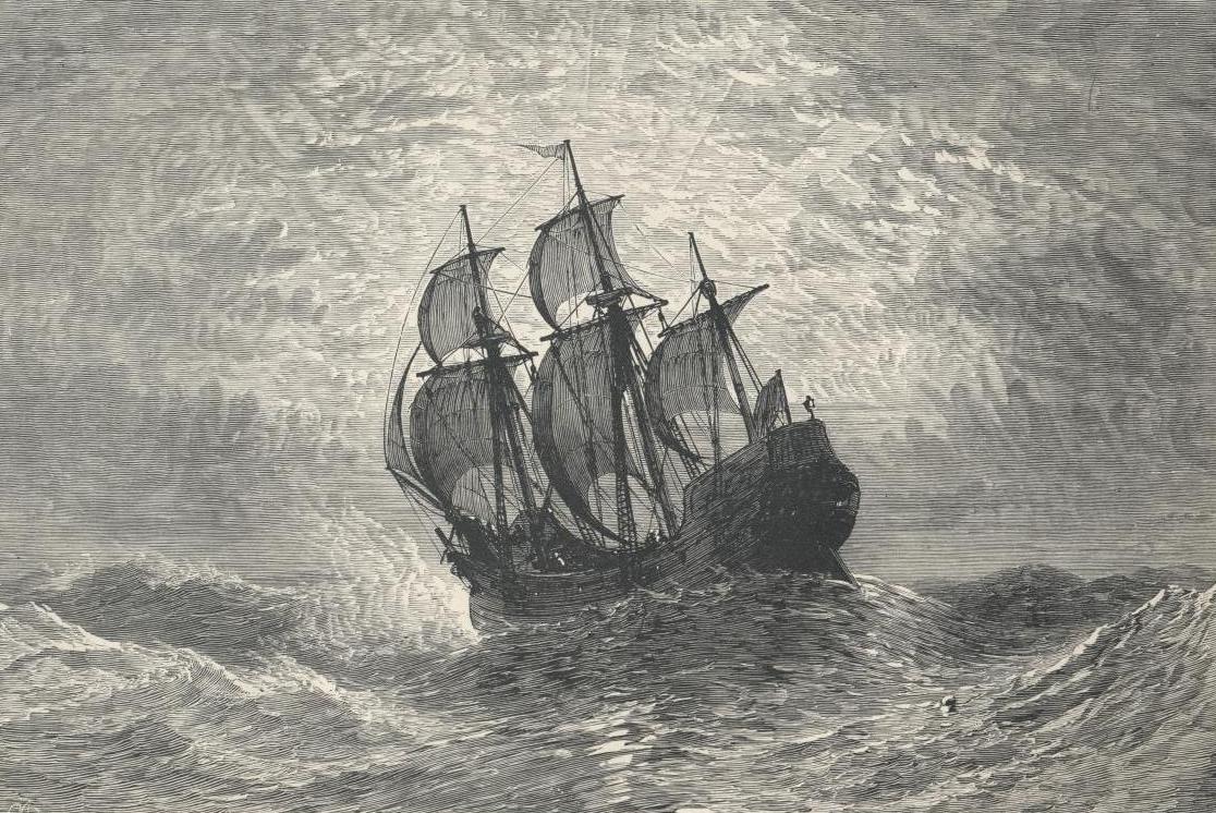 "Hail to thee, poor little ship MAY-FLOWER—of Delft Haven —poor, common-looking ship, hired by common charter-party for coined dollars,—caulked with mere oakum and tar, provisioned with vulgarest biscuit and bacon,—yet what ship Argo or miraculous epic ship, built by the sea gods, was other than a foolish bumbarge in comparison!"