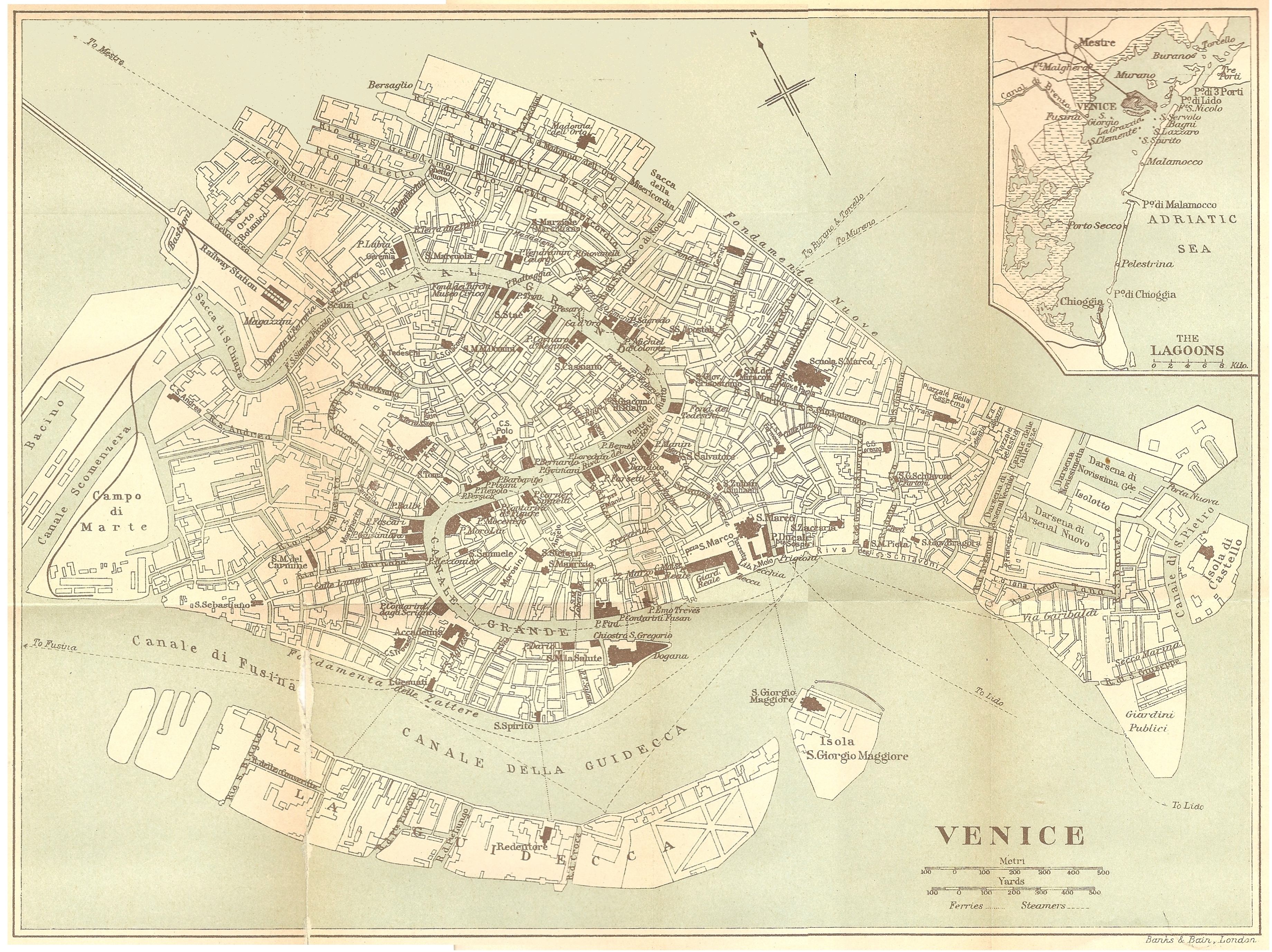 For purposes of description we have divided the city and outlying islands of the Venetian lagoon into twenty sections, arranged rather with regard to their relative historical and artistic importance than to strict topographical considerations, although these have not been lost sight of. In our quality of cicerone we have drawn from an acquaintance of the city at various times extending over a period of twenty years: more detailed and practical information may be sought in the admirable guide-books of Baedeker, Grant Allen, Gsellfels and Murray.