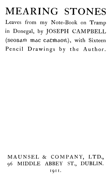 Leaves from my Note-Book on Tramp in Donegal, by JOSEPH CAMPBELL (Seosamh Mac Cathmhaoil), with Sixteen Pencil Drawings by the Author.