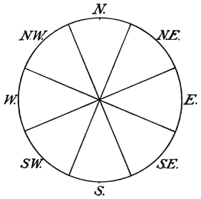 Record the direction of the wind according to the four cardinal points of the compass (N., E., S., and W.) and the four intermediate points (NE., SE., SW., and NW.). The direction of the wind is the point from which the wind blows. You can determine the points of the compass roughly by noting where the sun rises and where it sets.