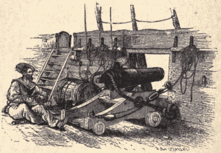 The colonies, on the other hand, began the struggle without a single armed vessel afloat. They had merchantmen which they could fit out as privateers to cruise against the British merchantmen, but they had nothing that could stand up against a ship-of-war. Even in guns they were sadly deficient; for though there were scattered here and there in the colonies a few 12-pounders and 9-pounders, they had to depend largely upon sixes and fours, which were not much better than popguns;[Pg 16] while of eighteens and twenty-fours they had scarcely any for naval use. Sailors they had, to be sure, all along the coast from New England down; and especially in the northern part there were numbers of bold and hardy men who had followed the sea since they were boys, some in fishing-smacks that made long voyages to the Banks, some in coasters, and some in the large merchant-ships that traded at ports beyond the sea. But of what use are sailors without ships or guns? Besides, as the Continental Navy was slow in forming, many of the best men went into the army, which promised an easier life, or into the privateer service, which held out greater prospects of reward; and when[Pg 17] the navy finally got to work, it was very hard to man the vessels.