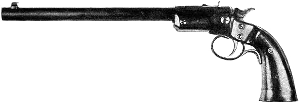 It is much more difficult to shoot well with the pistol or revolver than with the rifle. The latter, having a stock to rest against the shoulder and steady one end of the piece, has a decided advantage in quick aiming and in pulling[Pg 17] the trigger. The former, without a stock and being held in one hand with the arm extended so as to be free from the body, is without any anchor or support whatever, and is free to move in all directions. Consequently the least jar, jerk in pulling the trigger, puff of wind, or unsteadiness of the hand greatly disturbs the aim. Intelligent practice will, however, overcome these difficulties and disadvantages to such a degree that an expert shot with a pistol or revolver under favorable conditions can equal a fair shot with a rifle at the target up to 200 yards. When the novice essays to shoot the pistol or revolver, the results are generally disappointing and discouraging; but rapid progress invariably rewards the efforts of those who persevere, and when once thoroughly interested in this style of shooting, there comes a fascination for it that frequently endures throughout a lifetime.