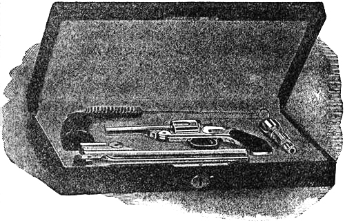 The pistol in early days was considered a gentleman’s arm—a luxury. It was the arm generally selected for duelling when that code was in vogue, the contestants standing 10 to 20 paces apart and firing at the word of command.