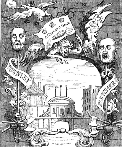 | Temple Bar, 1746, copied from an undated print published soon after the execution of the rebel adherents of the young Pretender. The view is surrounded by an emblematic framework, and contains representations of the heads of Townley and Fletcher, remarkable as the last so exposed; they remained there till 1772 | 23 |