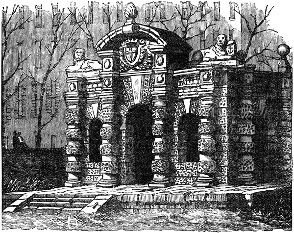 | Somerset House from the River, 1746, from an engraving by I. Knyff. Upon a barge moored in the river is seen the famous coffee-house known as “The Folly,” which, originally used as a musical summer-house, ended in being the resort of depravity | 56 |