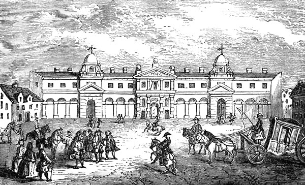 | The King’s Mews, 1750, from a print by I. Maurer. This building, erected in 1732 at the expense of King George II., was pulled down in 1830. In the foreground of this view the King is represented returning to his carriage after inspecting his horses | 238 |