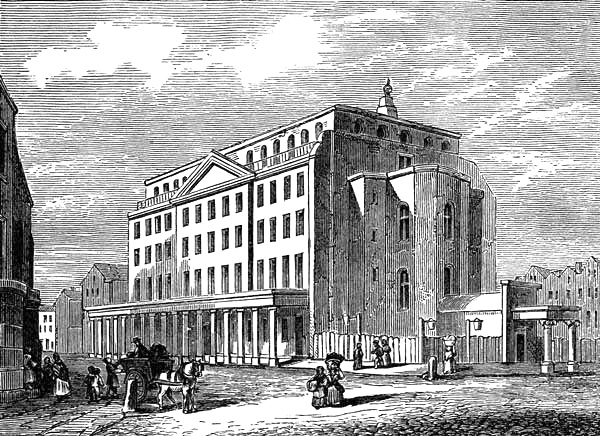 | Drury Lane Theatre, 1806, from an original drawing by Pugin. This was the third theatre, succeeding Garrick’s. It was built by Henry Holland, opened March 12, 1794, and burnt down Feb. 24, 1809. It was never properly finished on the side toward Catherine Street, where this view was taken | 347 |