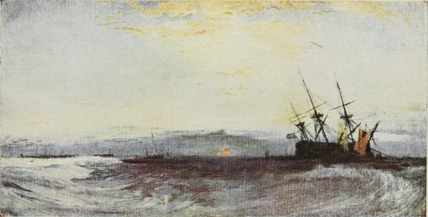 This beautiful sea piece is essentially Turner—the result of his personal observation. It was painted after he had freed himself from the desire to rival and outvie his predecessors, and before he became obsessed by the passion to paint pure sunlight. "A Ship Aground" is a pendant to "The Old Chain Pier, Brighton," which also hangs in the Tate Gallery.