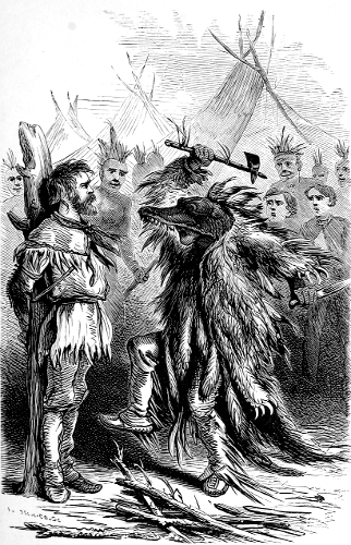 A step outside the lodge, and a rustling among the skins which formed the door, aroused Frank, and he once more made a strong effort to compose himself. The door was raised, and a face appeared at the opening—a dark, scarred, scowling face, which was almost concealed by a fur cap and thick bushy whiskers. Frank was thunderstruck. He leaned forward to examine the face more closely, and then his heart seemed to stop beating, and with a cry of alarm he sprang to his feet. As much as he feared the Indians, he feared this man more.