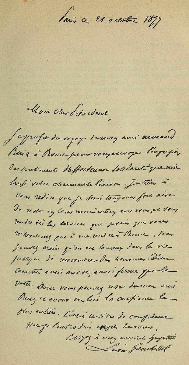 2. Quali relazioni corressero tra Crispi e Gambetta dopo questo incontro, si rileva dalla seguente lettera del Gambetta a Crispi:
