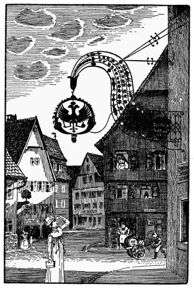 But we must not end without delivering a little sermon to the signs, too, that still glitter in the warm sunshine. To them, cocks, deer, bears, oxen, and horses, a church-tower cock, celebrated by the humorous clergyman poet Möricke of Schwabenland, gives this solemn warning:—