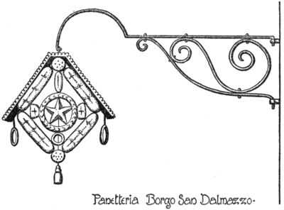 The Romans seldom had signs that hung free, such as the Cimbric shield described above. Generally their signs were paintings or reliefs on a wall. There were in the shops of Pompeii depressions in the wall made especially to receive these signs. So, too, the so-called “dealbator” whitewashed a place on the wall for the election bulletins. Sometimes the painter used wood or glass as the ground for his sign.