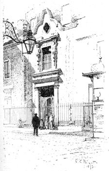 This is set forth in a monograph, the title of which may be translated and abbreviated thus: Drawings of the house of the brothers Bagatti Valsecchi in Milan at No. 7 Via di Santo Spirito. One very general, very abstract, very little detailed ground-plan explains what the house is, considered as a building occupying a piece of ground, and doing certain definite work. Evidently it was thought that more should not be allowed the public, concerning a house of habitation. From this it appears that the house is a single very large dwelling of which the dimensions on the ground may be taken at one hundred feet of frontage by sixty feet or rather less of depth. This, however, is the measurement of the whole plot of ground; for the house covers it all, and light for the rearmost rooms and corridors is obtained by three separate courts surrounded by arcades. The front on the street is deeply recessed so as to give a façade of some fifty-five feet at the bottom of the court; with two projecting wings of different widths; the projection, or depth of the court, being of about eighteen feet. And now comes the essential thing—that which forms the peculiarity of the building, and the immense and radical diversity between the scheme proposed by its designer and that adopted by any Parisian master-workman who may have a hotel privé to build. The Milan house is in every respect, in its general design and in the minutest detail, that which might have been built about 1475 in the same town and on the same street. The front is of brick and terra-cotta, except that the door-piece in the middle of the recessed façade, the podium, so to speak, or sub-wall of the basement story, standing some four feet high, is of stone; and that a part of one of the wings where it is opened up in the large doorway below communicating with a kind of shop or business-room, and, above, into arcades with a projecting balcony, is also of cut stone. This stone would have been taken to be marble but that the legends expressly speak of pietra, and it is probable that Istrian or some other hard white or light gray stone is used. Of stone also are the pillars which carry the vaulting of the cloisters, or galleries, which surround the courts within, and many pilasters, jamb-pieces, dadoes, parapets, and balustrades of the interior; as well as the columns of the logetta which crowns one of the wings projecting on the street, and a similar and larger one on the court within. The walls 126 of the courts, except for the stone work above described and for certain cornice bands which are evidently of terra-cotta, are entirely finished in sgraffito; or scratched decoration on hard plaster, fit to bear the moderate climate of Milan, together with certain modelling in very low relief, which is intermingled with the scratched or incised work, and closely harmonizes with it. One interesting detail of the undertaking must be mentioned here: pieces of ancient work have been built into the structure rather freely, and these are so perfectly in the style that they do not attract attention to themselves. They need, in fact, the legends which announce their presence. This is one way of saying that the collected fragments of antiquity have been carefully chosen with the view to being of one style, of one epoch, of one character, and that the building has been built in the style so fixed. At the principal doorway there are four ancient medallions of the character which sculptors of the fifteenth century enjoyed; that is to say, they are enlargements of Roman coins. The secondary or wing doorway, spoken of above as communicating with what seems to be a kind of shop, is entirely antique, with pilasters filled with carving in the sunken panels. In the spandrels of the arch above are two more antique medallions, and an antique pilaster in marble from Mantua is set in the small reëntrant angle formed between this piece of the front and the adjoining house, which projects slightly beyond the Casa Bagatti. Ancient iron work is used for the two windows which flank the central doorway, and by way of emphasis the other windows on that story are without grilles. Iron work in the head of the side doorway already described as antique is announced as made up of ancient parts; and it may be admitted here that all this wrought iron is of somewhat earlier date than the structure generally; a breach of that harmony which has been insisted on above, but one which might easily be considered as quite characteristic of good, fine, imaginative fifteenth century work, when the Renaissance builders would have rejected carvings in the Gothic spirit, but would have admitted iron work of that character without trouble. Above this ancient doorway an ancient Venetian balcony, also of stone, is worked into the double arcade, of which mention has been made. Two large and elaborate wooden ceilings are used in the open cloisters which surround the courts, and it is worthy of commendation that they seem to have been put in place without restoration, with nothing more than necessary repairs or necessary strengthening, and that no attempt has been made to give them a freshly finished modern look. An ancient doorway of carved wood opens upon one of these porticoes; an ancient vera di pozzo, or cistern head, from Venice stands in the middle of that court; an ancient marble fountain and basin; an ancient triple tabernacle with sculptured figures of saints; another tabernacle with an Adoration, and a multiplicity of minor pieces of carving, are worked into the building, including an admirable lion, of heraldic character and supporting a shield of arms, set upon a newel at the foot of the great staircase; and, finally, a very great amount of ancient ironwork in the way 127 of hinges, door-handles, knockers, awning-rings, and the like, is used in the work.