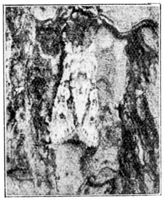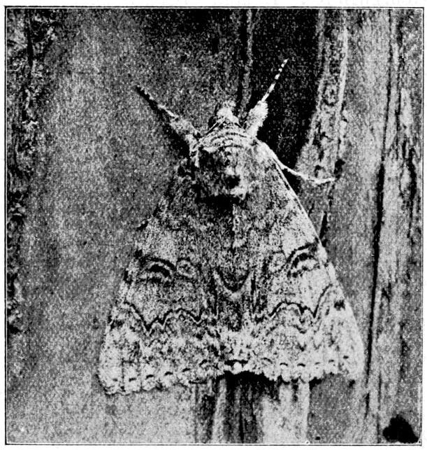 This moth is shown on Plate 4, Fig. 6. It is somewhat similar in general appearance to the last mentioned, but the {10}colour of the fore wings is greyer; the cross lines are not parallel, and the outer margins of these wings are less irregular. The caterpillar is greenish, with black dots, and white lines along the back and sides; the head and plate on the first ring of the body black. It feeds, on poplar and aspen, in April and May. By day these caterpillars may be found spun up between two leaves or in a folded leaf. The moth is out in July and August, but is rarely noticed in the daytime, although at night, when it becomes active, it may be obtained, sometimes not altogether uncommonly, at honeydew, or in much fewer numbers at sugar or light. The best way to obtain the species is to search for the caterpillars, which are not at all difficult to rear. Most of them, however, prefer the higher foliage of well-grown aspen or poplar, where they may be seen but not readily secured; but I have generally found as many as I wanted within reach.