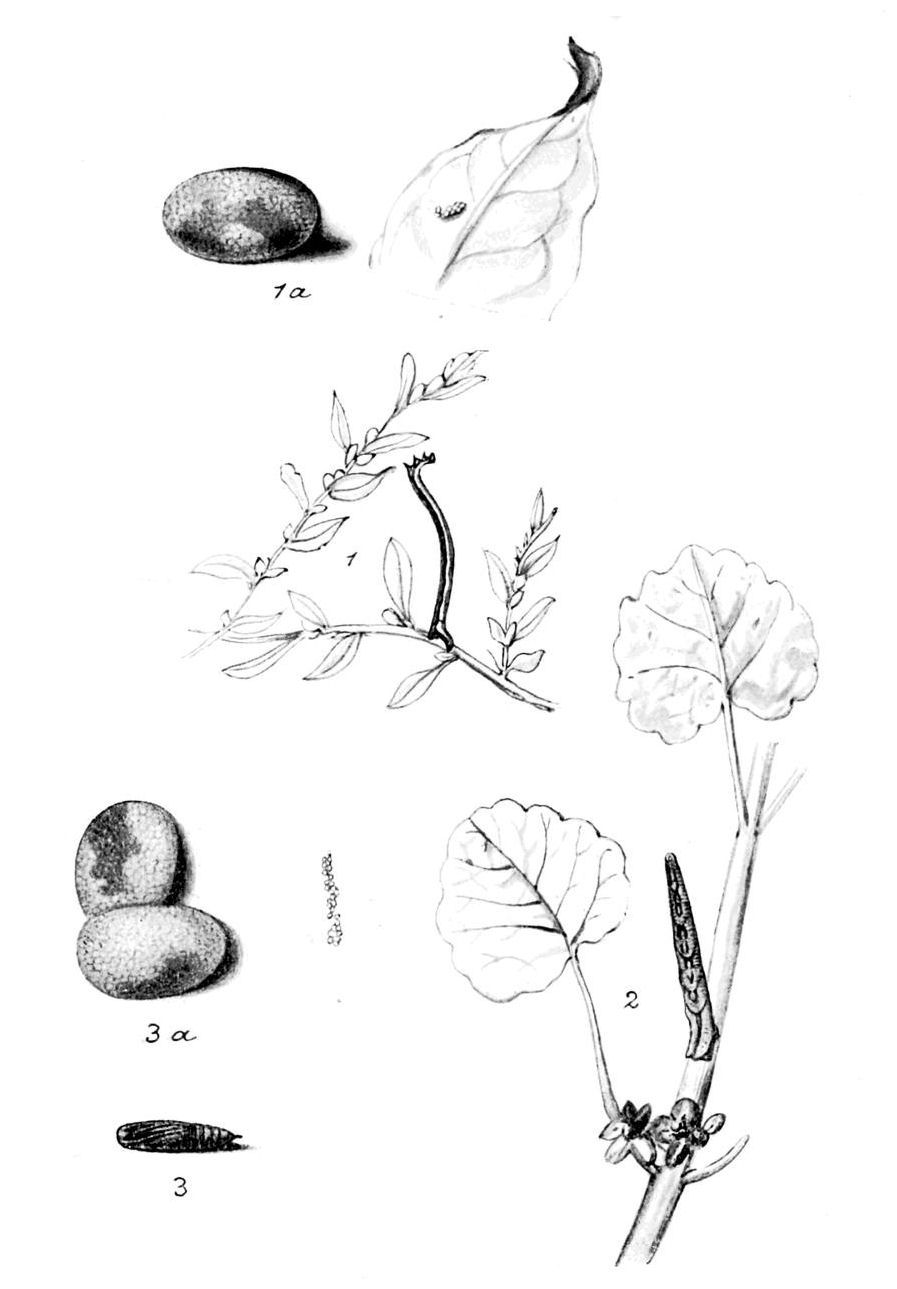 The eggs (Plate 6, Fig. 3) are yellowish when laid, but become purplish later, and the ribs then appear whitish.