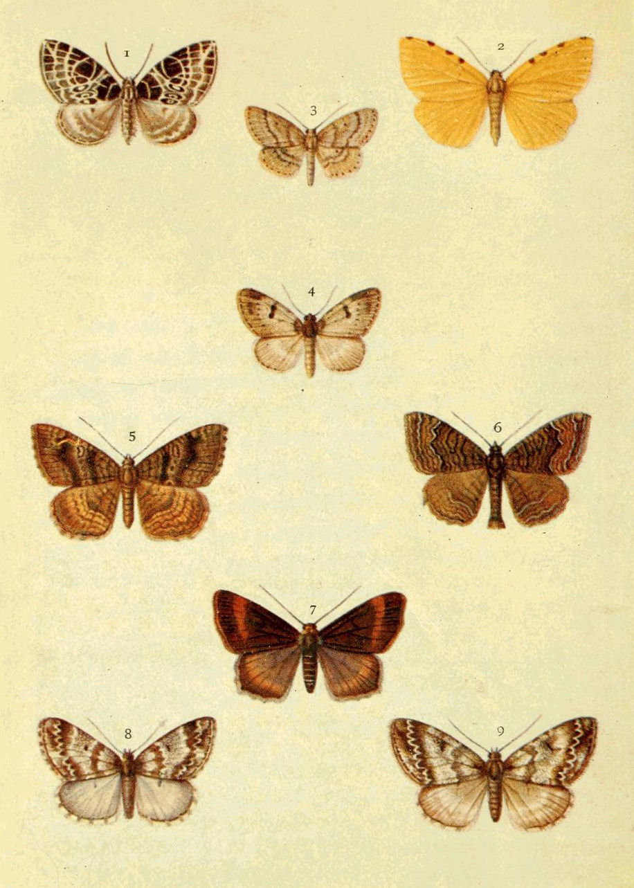 I have again to tender my sincere thanks to Mr. Robert Adkin, F.E.S., for kindly lending specimens of rare species and varieties for figuring; and also to Mr. B. Adkin, Mr. G. T. Porritt, F.E.S., and Mr. A. J. Scollick, F.E.S. I desire also to gratefully acknowledge the loan of further beautiful coloured drawings by Mr. Alfred Sich, F.E.S. These figures have been most accurately reproduced in black and white by Mr. Horace Knight, to whom I am greatly indebted for his able assistance in connection with the numerous drawings of ova, larvæ, and pupæ. In some cases the preserved skin of a caterpillar had to serve as a model, and where this occurs the fact is mentioned. A few figures of larvæ have been copied from Dr. G. Hofmann's Die Raupen der Schmetterlinge Europas, 2nd edit., by Professor Dr. Arnold Spuler. All such reproductions are duly noted in the text.