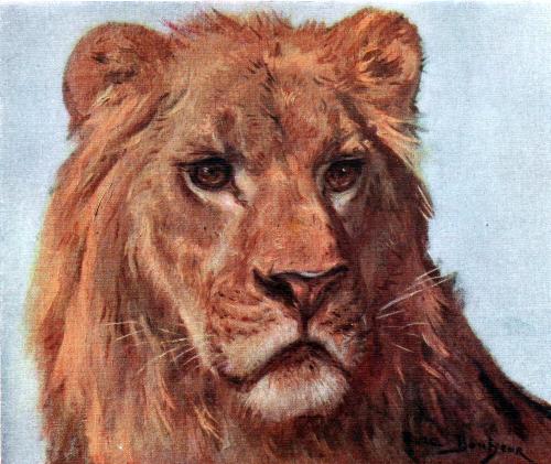 According to artists, the lion is the most difficult of all animals to paint, on account of the prodigious mobility of his physiognomy. Rosa Bonheur was able, thanks to her inimitable art, to catch and reproduce the fugitive facial expressions of the kingly beast,—expressions that the artist succeeded in securing during a visit to a certain menagerie, and which she managed to record with a most surprising vigour and fidelity.