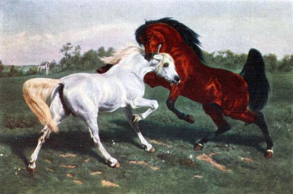 This picture is one of the last that Rosa Bonheur painted. It is celebrated in England because of the reputation of the two horses who are engaged in this passionate duel, on which the artist has expended all the resources of her marvellous talent.