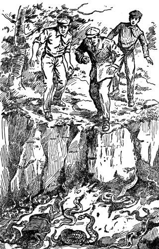 Here they were constantly annoyed by a crowd of town idlers, under the leadership of one Andy Lasher, and the four chums passed through a series of the most entertaining adventures, such as pleases all boys who love excitement. These three comrades of Bluff were named Frank Langdon, Jerry Wallington and Will Milton, the latter being a camera crank of the first water, always ready to sacrifice his comfort and time if there was any hope of securing a picture to commemorate the event.