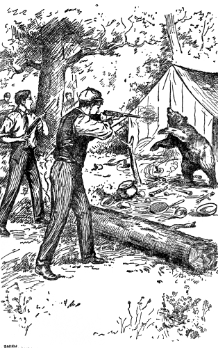 When the Easter week of holidays came, in early April, the chums had decided to spend a portion of the time camping on a timber-covered island near the foot of the ten-mile lake, and which was seldom visited by any one on account of the stories told about the vast number of wildcats to be found there, as well as the wild man who had been seen at various times. A fire on the little steamboat plying the lake, and the robbery of a passenger, played an important part in the exciting events that occurred while the chums were at Wildcat Island, all of which, including the solving of the mystery connected with the wild man, have been set down in the second volume of this series, called "The Outdoor Chums on the Lake; or, Lively Adventures on Wildcat Island."