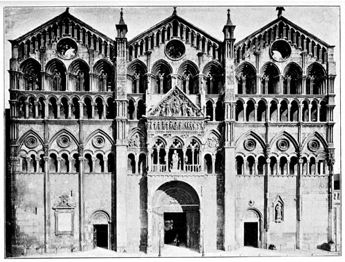 I think if we study these obscure Comacine Masters we shall find that they form a firm, perfect, and consistent link between the old and the new, filling completely that ugly gap in the History of Art. So fully that all the different Italian styles, whose names are legion—being Lombard-Byzantine at Ravenna and Venice, Romanesque at Pisa and Lucca, Lombard-Gothic at Milan, Norman-Saracen in Sicily and the south,—are nothing more than the different developments in differing climates and ages, of the art of one powerful guild of sculptor-builders, who nursed the seed of Roman art on the border-land of the falling Roman Empire, and spread the growth in far-off countries.