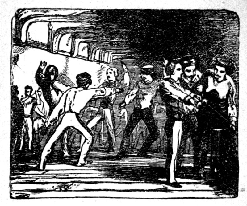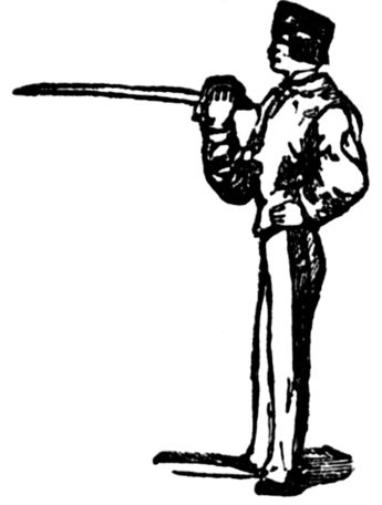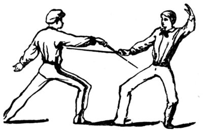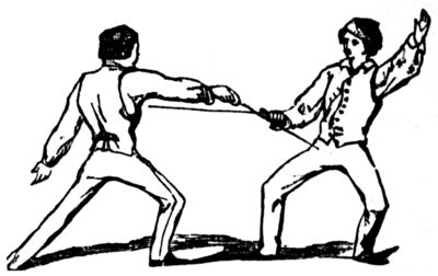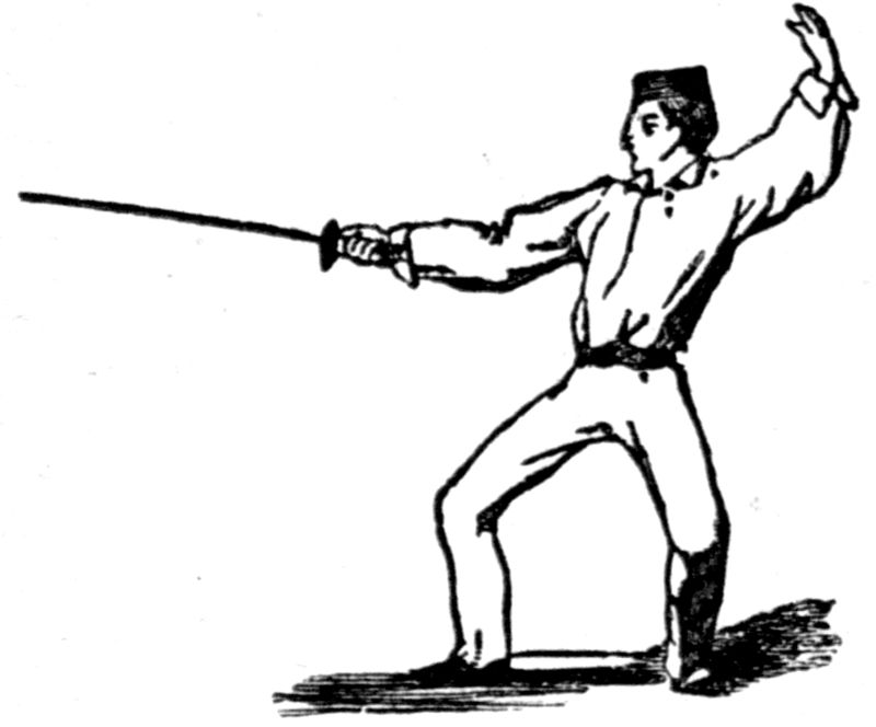 Fencing is the art of using the small-sword, or rapier. The small-sword has a straight blade, about thirty-two inches in length outside the guard, and is fashioned for thrusting only. Although it is an art of the greatest antiquity, very great improvements have been made in it during the last half-century, chiefly by French masters, who excel those of all other countries. This has been attributed to various causes; by some to the agility and acknowledged power of rapid physical action possessed by this nation; by others, to their natural[Pg 4] vivacity and mental quickness. In my opinion, however, a more direct and powerful cause may be traced in the great encouragement and universal patronage which it has ever received from every grade of a chivalrous and military people. Every regiment has its maitre d'armes, and every barrack its fencing-school. Indeed, in so important a light was the proper teaching of this art held, that one of the French kings (Louis XIV.) granted letters-patent to twenty eminent masters, who alone were permitted to teach in Paris. When a vacancy occurred, no interest and no favor could enable a candidate to obtain this privilege: he had to fence in public with six of these chosen masters, and if by any of them he was beaten by two distinct hits, he was considered unqualified to teach in the capital.